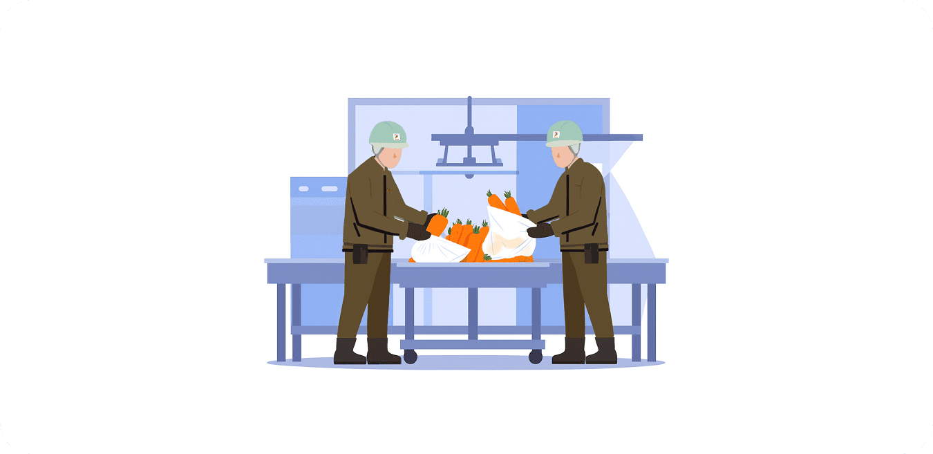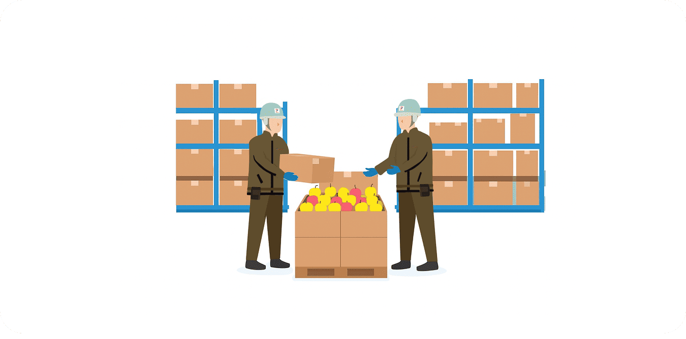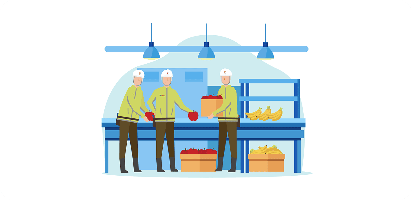 収穫の瞬間から状態の変化が始まる青果物は、保管環境が大切です。各商品に合った温度を保った庫内で保管しています。その上で、受発注システムと連携した正確・ていねいな仕分け作業を行い、出荷準備をしています。