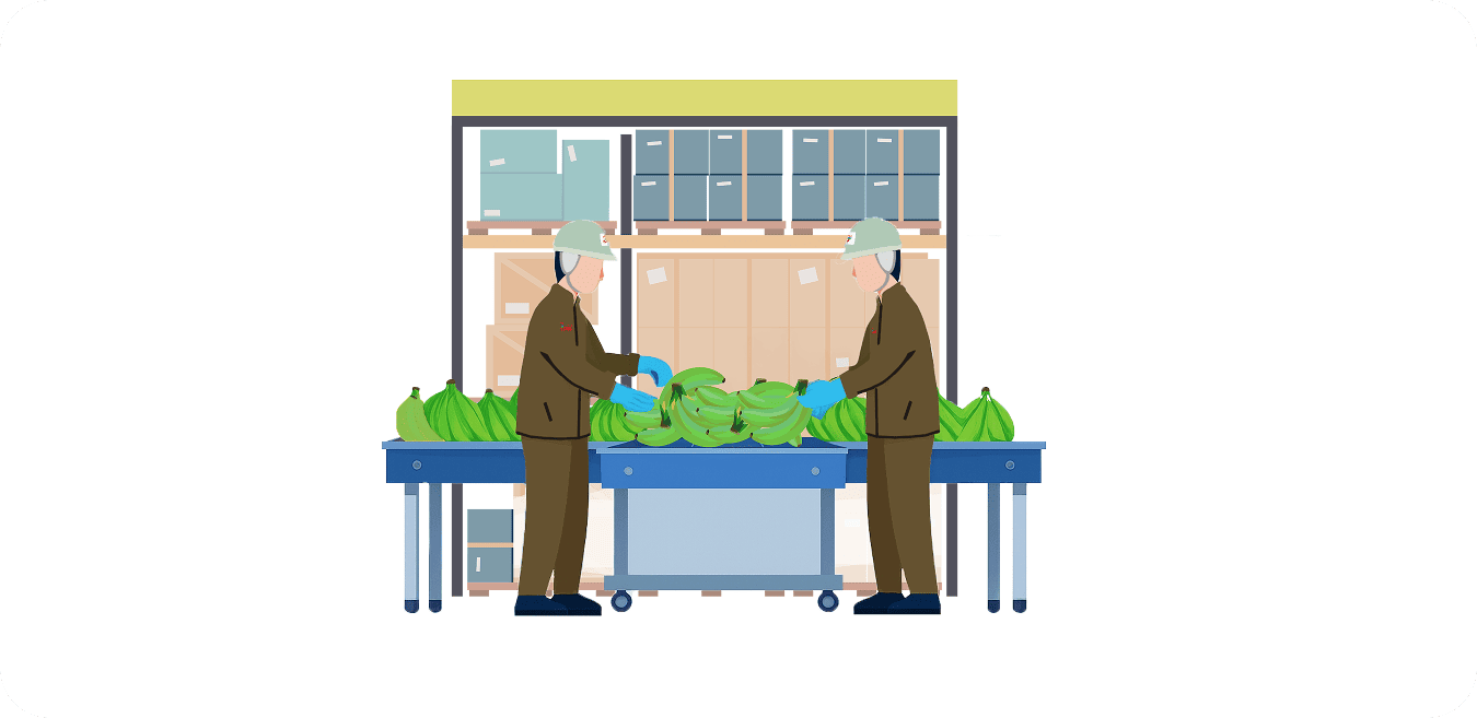 日本到着時の輸入バナナは青く、熟れていない状態です。全国各地の店頭に到着するタイミングを逆算し、創業から蓄積してきた追熟技術の多くのパターンを細かく使い分け、食べごろで届くように出荷します。当社の高い追熟加工技術は、アボカドやキウイフルーツ、洋梨などにも応用されています。